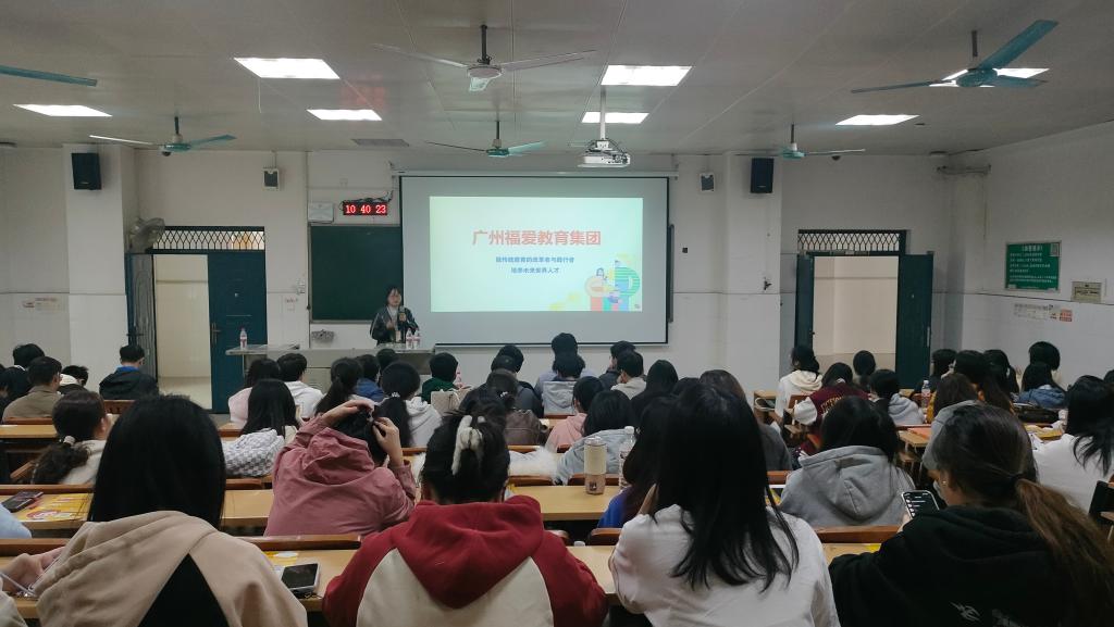 11月3日上午10:30,我院在6栋302教室承办广州福爱教育集团专场招聘活动,80余名学生参加了招聘活动。主讲人为该教育集团的合伙人曹艺昕。