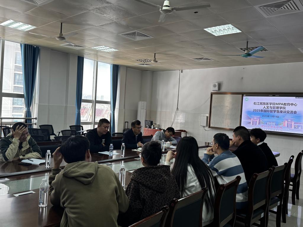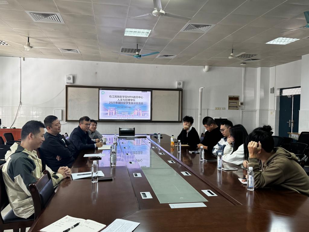 11月13日上午11:00,我院在6栋616会议室召开国际学生座谈交流会。我院党委书记、院长李常应,副院长农圣,公共事业管理教研室主任庞庆泉老师,市场营销教研室主任陈昊老师出席座谈会,5名越南留学生和1名老挝留学生参加了座谈交流。