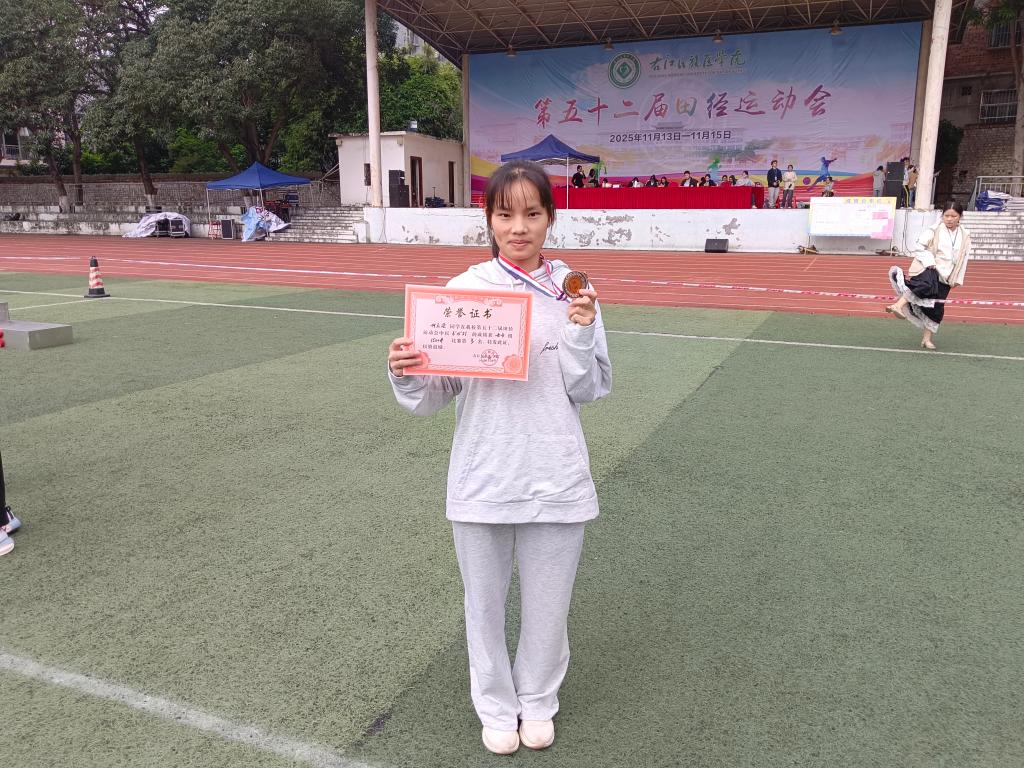 近日,我院多名选手参加了学校第五十二届田径运动会1500米项目,他们在赛道上展现出顽强的拼搏精神,用汗水与坚持交出了精彩答卷,其中2025级健管班何玉滢更是斩获该项目女子组第三名。