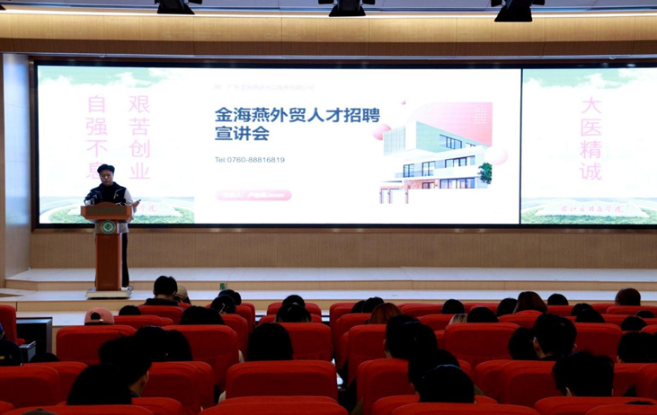 会上,卢副总经理结合公司发展实例与当前国际贸易形势,深入浅出地剖析了外贸行业的最新动态与未来趋势。首先,他表明了数字化能力、跨文化沟通、供应链管理等综合素养对现代外贸人才的重要性,并分享了我校及兄弟高校往届学长学姐的职场实战经验与心得。之后,他向同学们介绍了广东金海燕外贸公司的“人才—企业对接流程”“金海燕的课程及培训流程”和“双选会流程”。