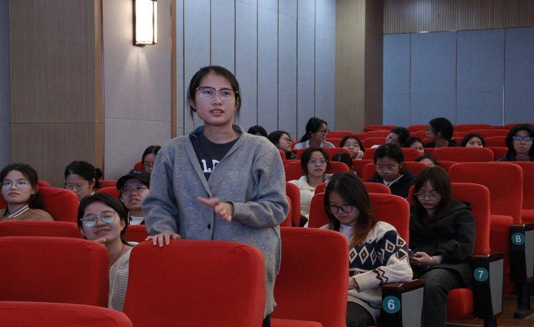 互动环节中,语言文化学院2022级英本2班赖海燕同学就职业规划、行业入门、技能提升等方面的疑问与卢副总经理进行了交流。卢副总经理对同学们关心的问题逐一给予了耐心细致地解答。