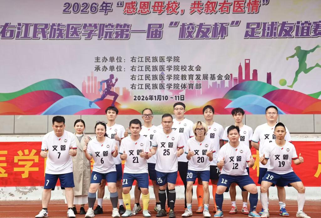 1月10—11日,我校第一届“校友杯”足球赛在百城校区足球场举行。本届赛事以“感恩母校,共叙右医情”为主题,吸引了来自各地的校友足球代表队重返母校、共赴绿茵之约。其中,我院校友足球队团结一心、奋勇拼搏,最终荣获比赛第五名。