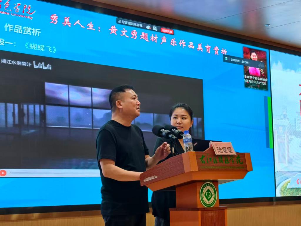 覃金盾副教授与陆媛媛老师共同赏析音乐作品