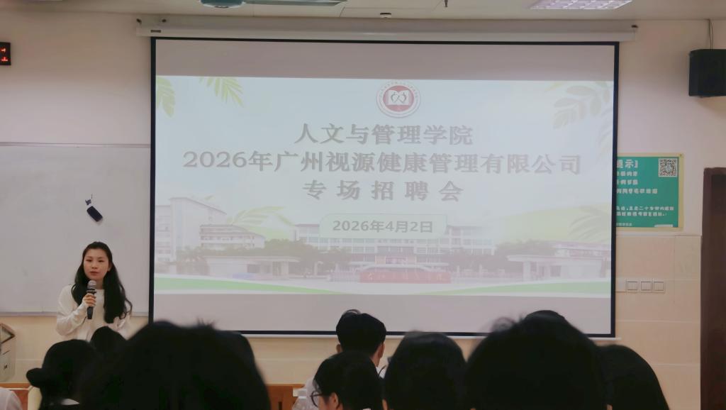 4月2日上午9:00,广州视源健康管理有限公司专场招聘宣讲会在教学楼7栋101教室召开。我院学生科辅导员赵彬冰老师主持宣讲会,企业代表健康管理部门总监王巧婷担任宣讲嘉宾,我院部分学生参加宣讲会。
